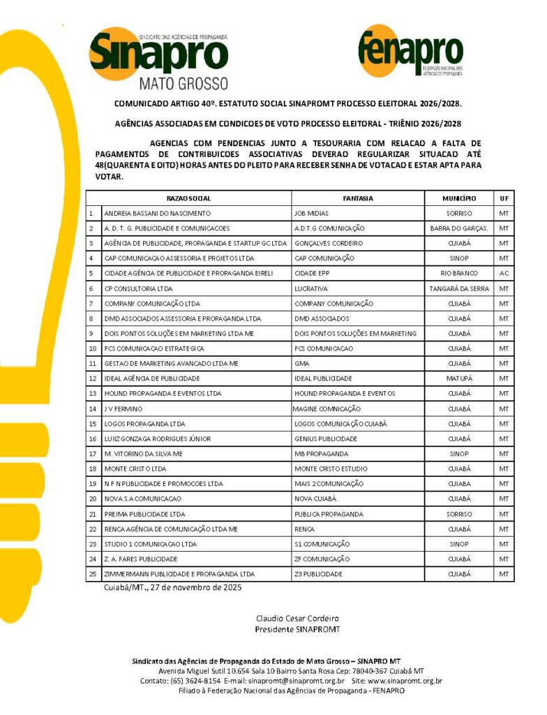 SINAPRO MT – Sindicato das Agências de Propaganda do Estado de Mato Grosso